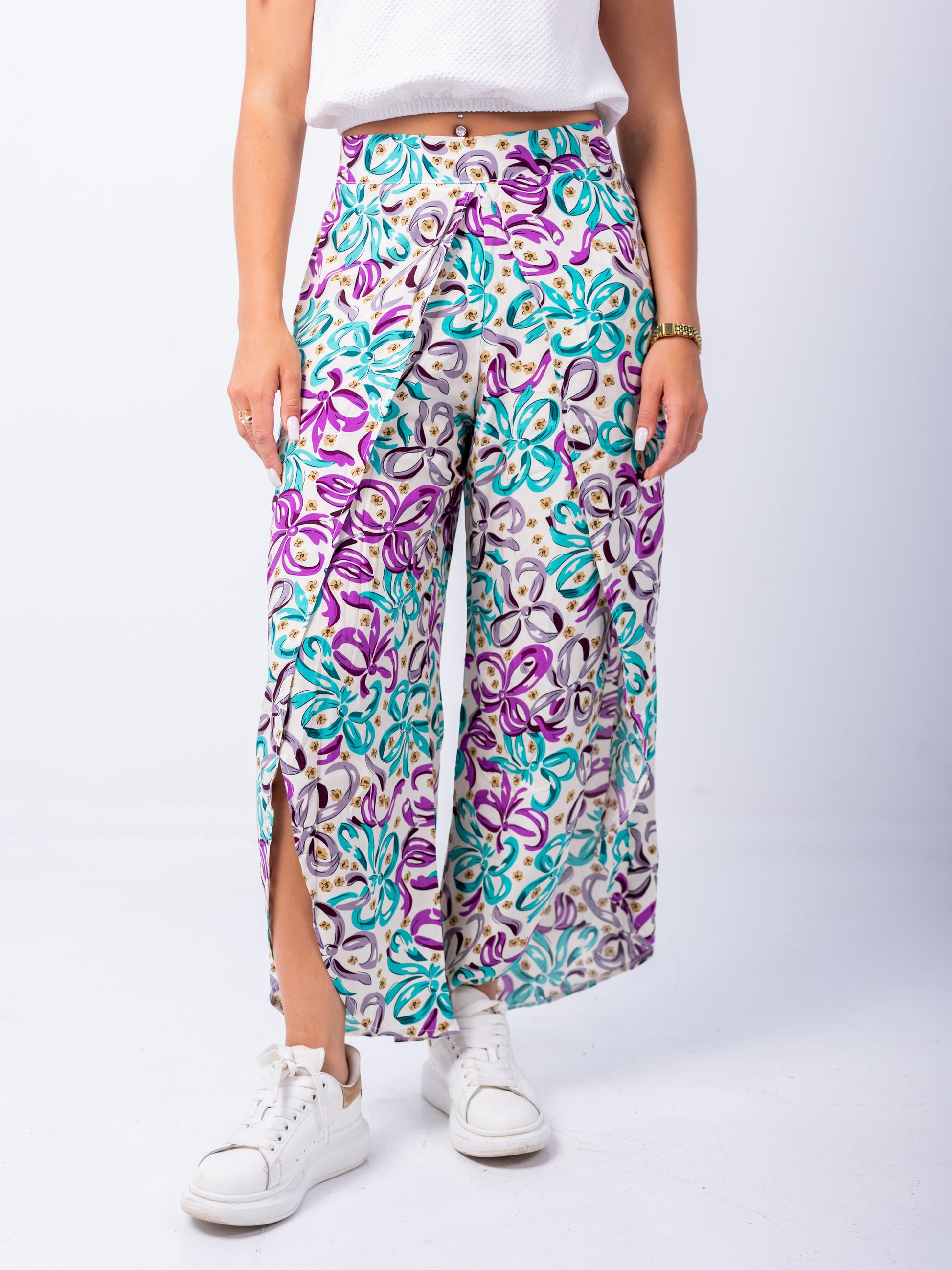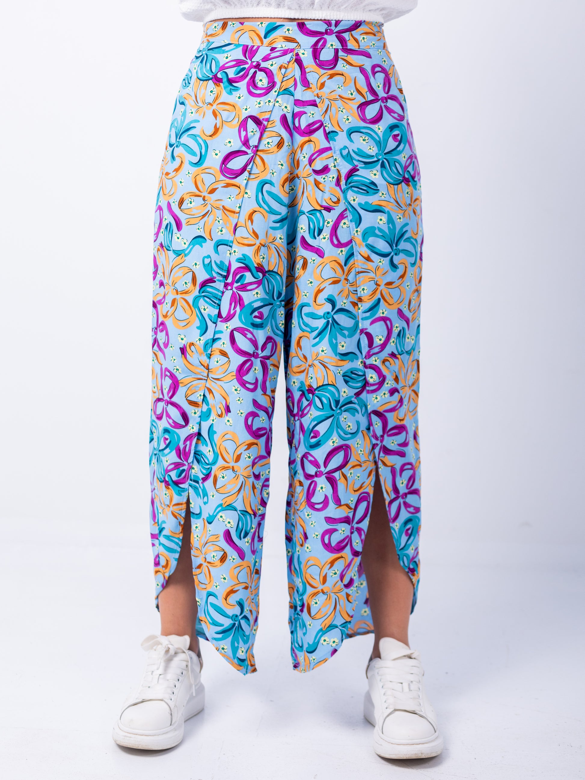 Step into effortless style with our Floral Wide Leg Pants. Designed for comfort and a flattering silhouette, these pants feature a vibrant, eye-catching floral and ribbon print that's perfect for adding a pop of color to your wardrobe.