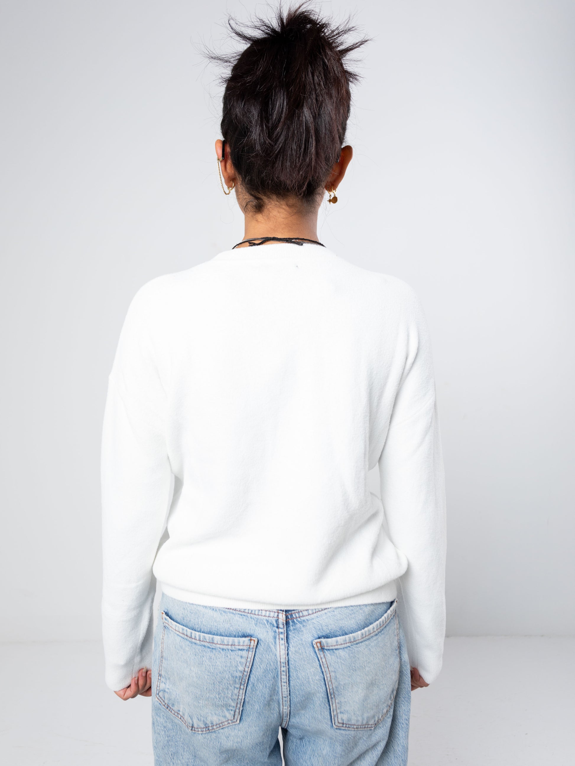Experience pure comfort. This essential crewneck sweater features an incredibly soft, lightly brushed texture for a cozy, cloud-like feel. Its simple design makes it a perfect, versatile basic for everyday wear.