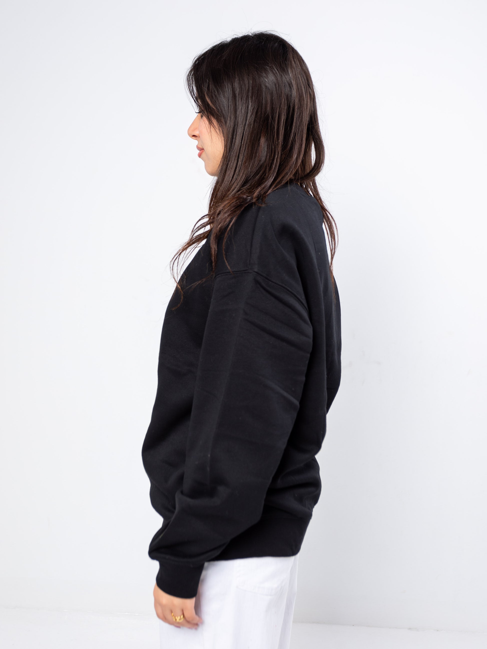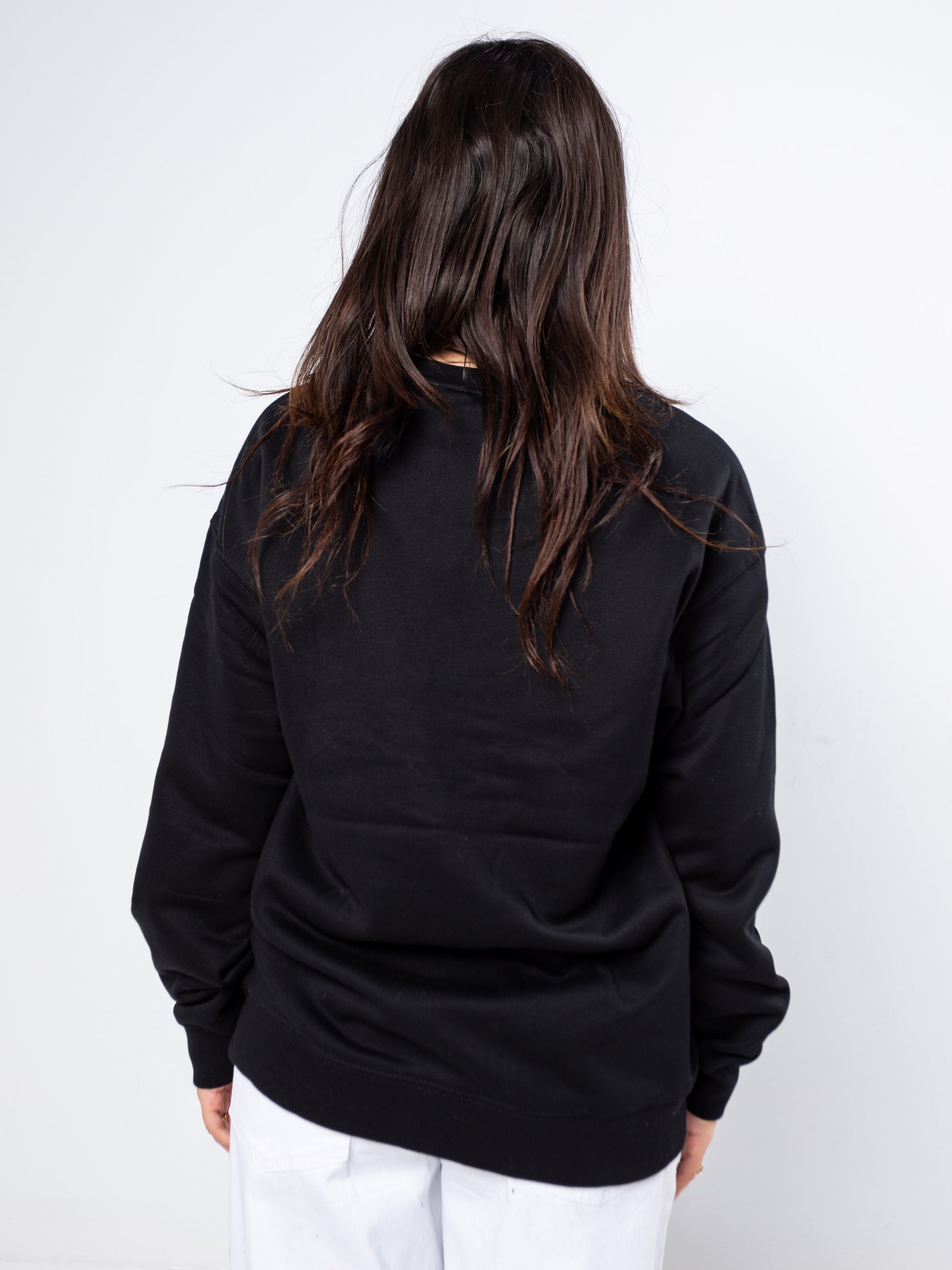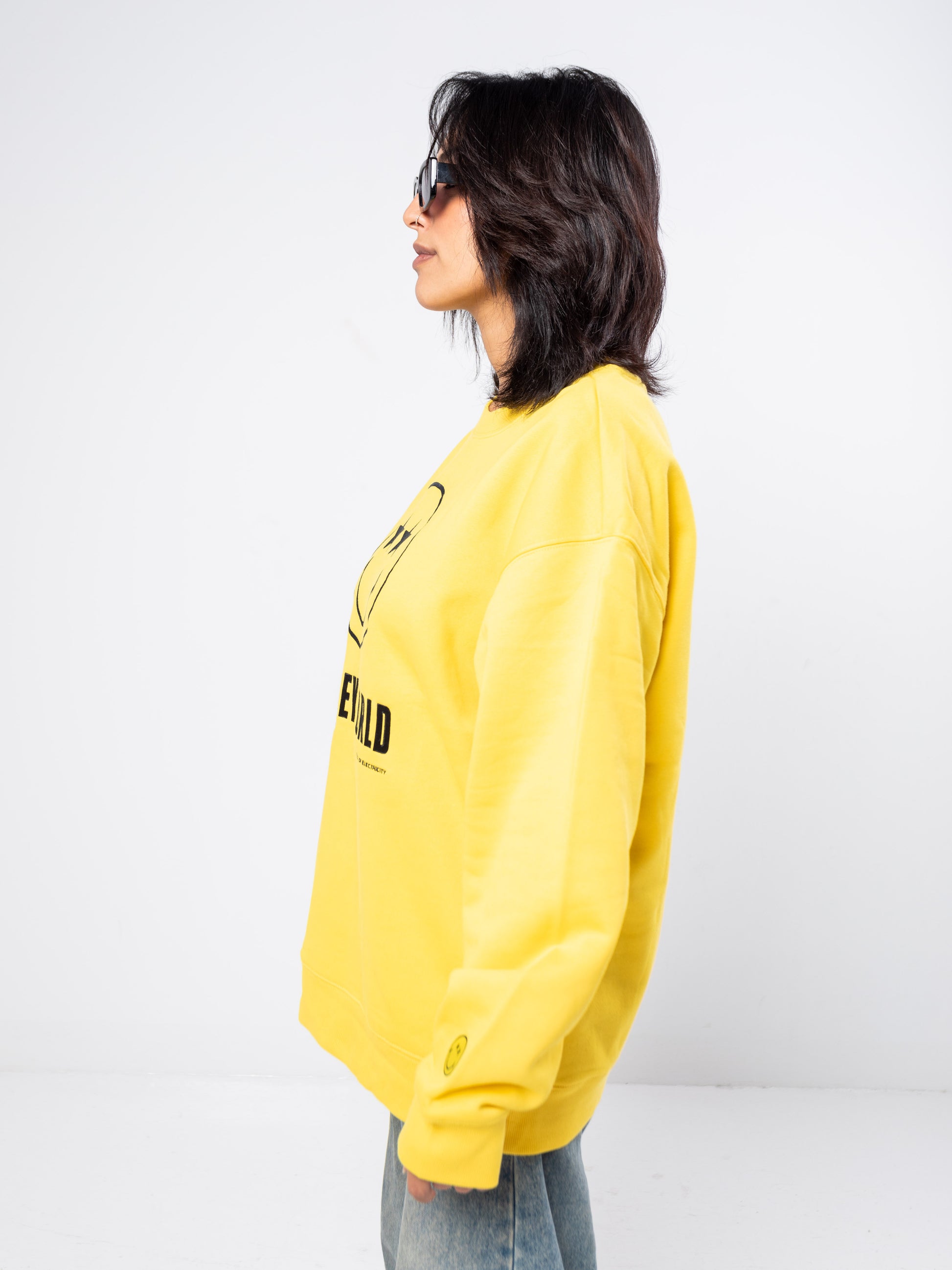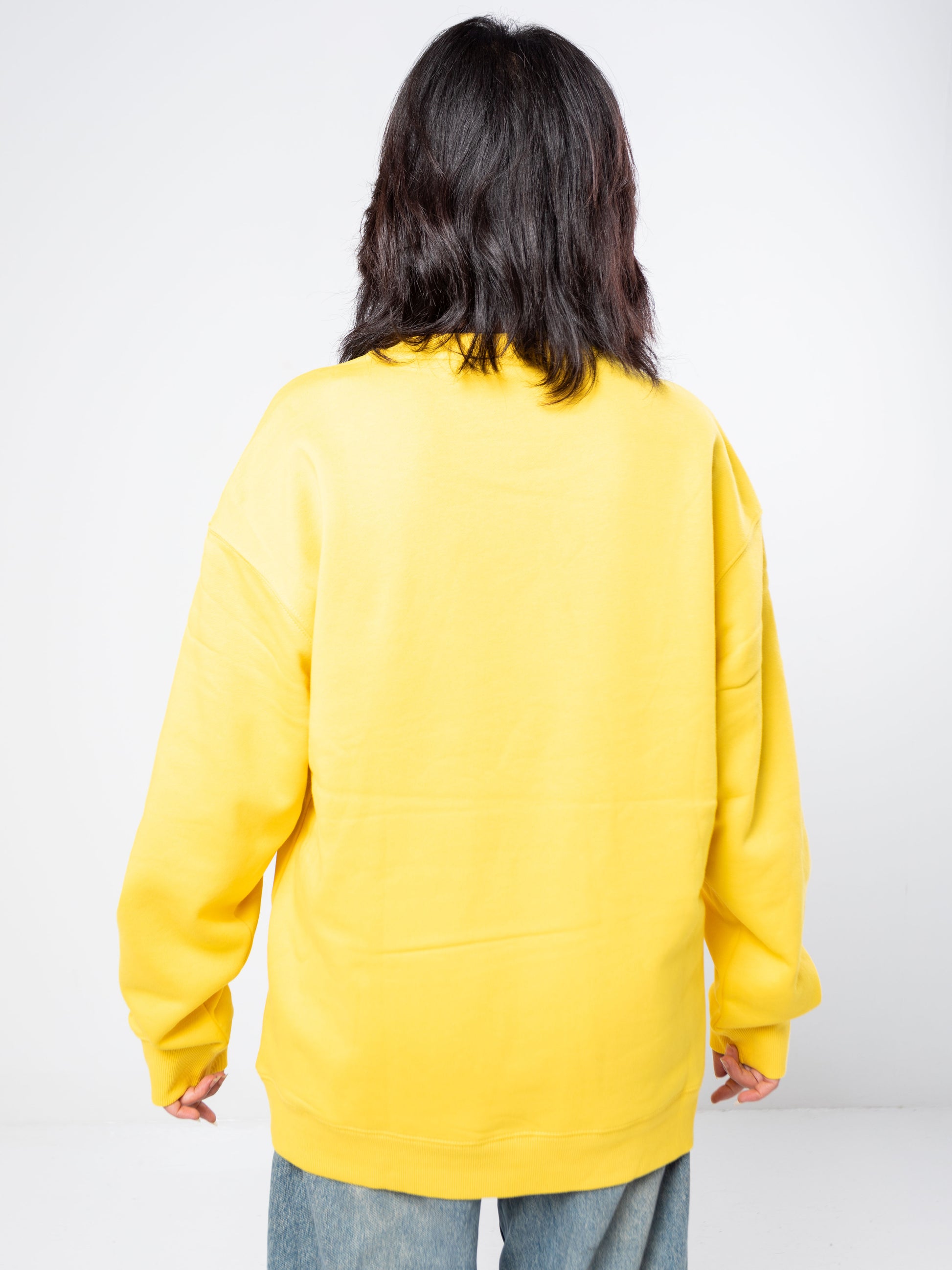 Spread positive vibes wherever you go. This oversized crewneck features a bold, eye-catching graphic and is designed for ultimate comfort. Choose bright yellow or classic black to match your mood.
