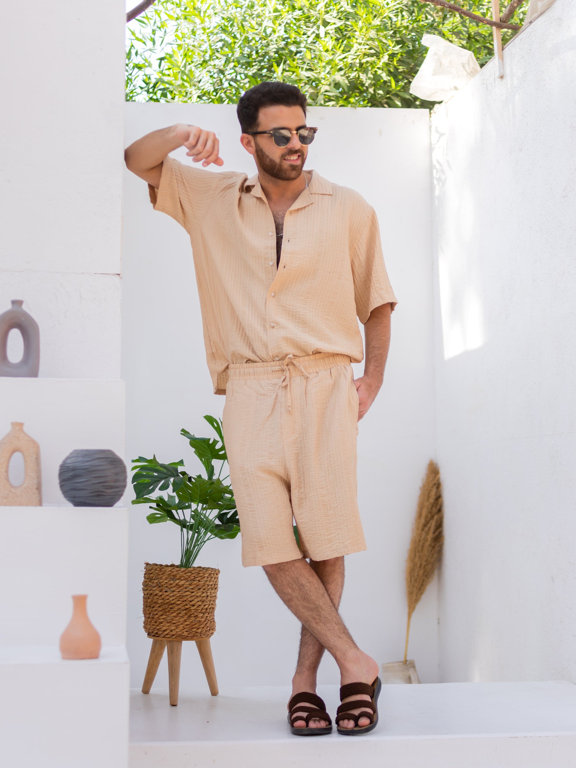 Discover your new warm-weather uniform with our Linen Comfort Set. Crafted from a premium, textured linen, this matching short-sleeve shirt and relaxed shorts duo is designed for ultimate breathability and effortless style. The light, airy fabric keeps you cool and comfortable, while the laid-back fit offers an easygoing sophistication perfect for any summer day. Wear them together for a chic coordinated look or mix and match for endless styling possibilities.