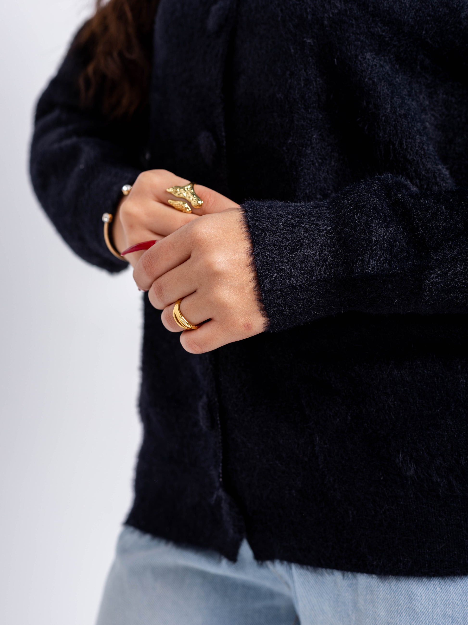 Add a layer of effortless warmth with our Plush Knit Cardigan. This versatile piece features a soft, fuzzy texture and a clean button-up front, making it the perfect transition piece for cooler weather. Its neutral tone and relaxed silhouette pair beautifully with anything from casual denim to tailored trousers.